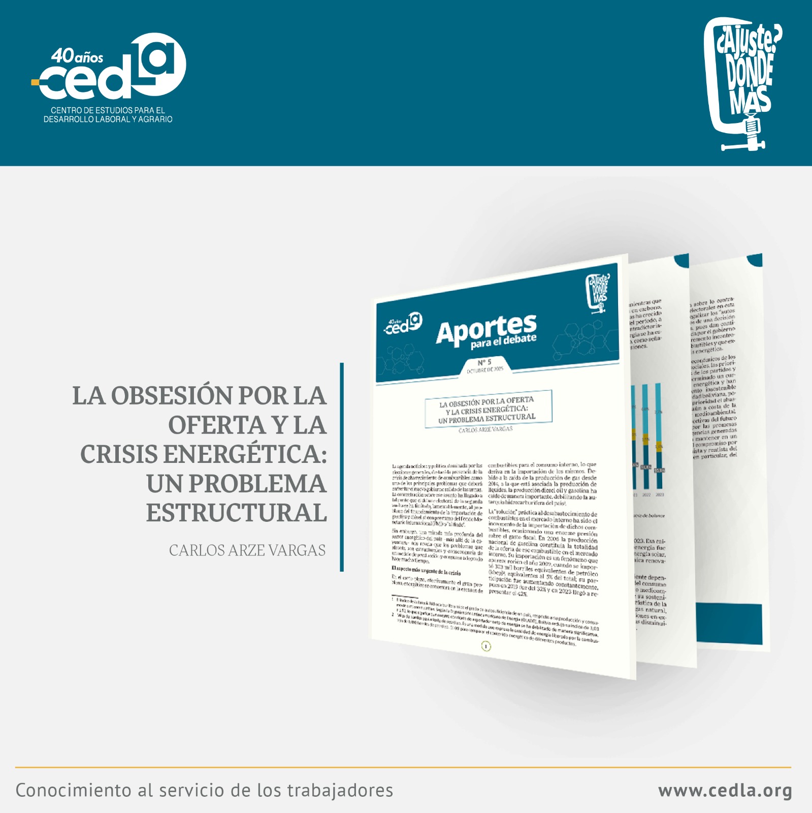 El boletín “La obsesión por la oferta y la crisis energética: un problema estructural” forma parte de la serie Aportes para el Debate, publicada por el CEDLA con el objetivo de contribuir al análisis crítico de temáticas relevantes para el país.