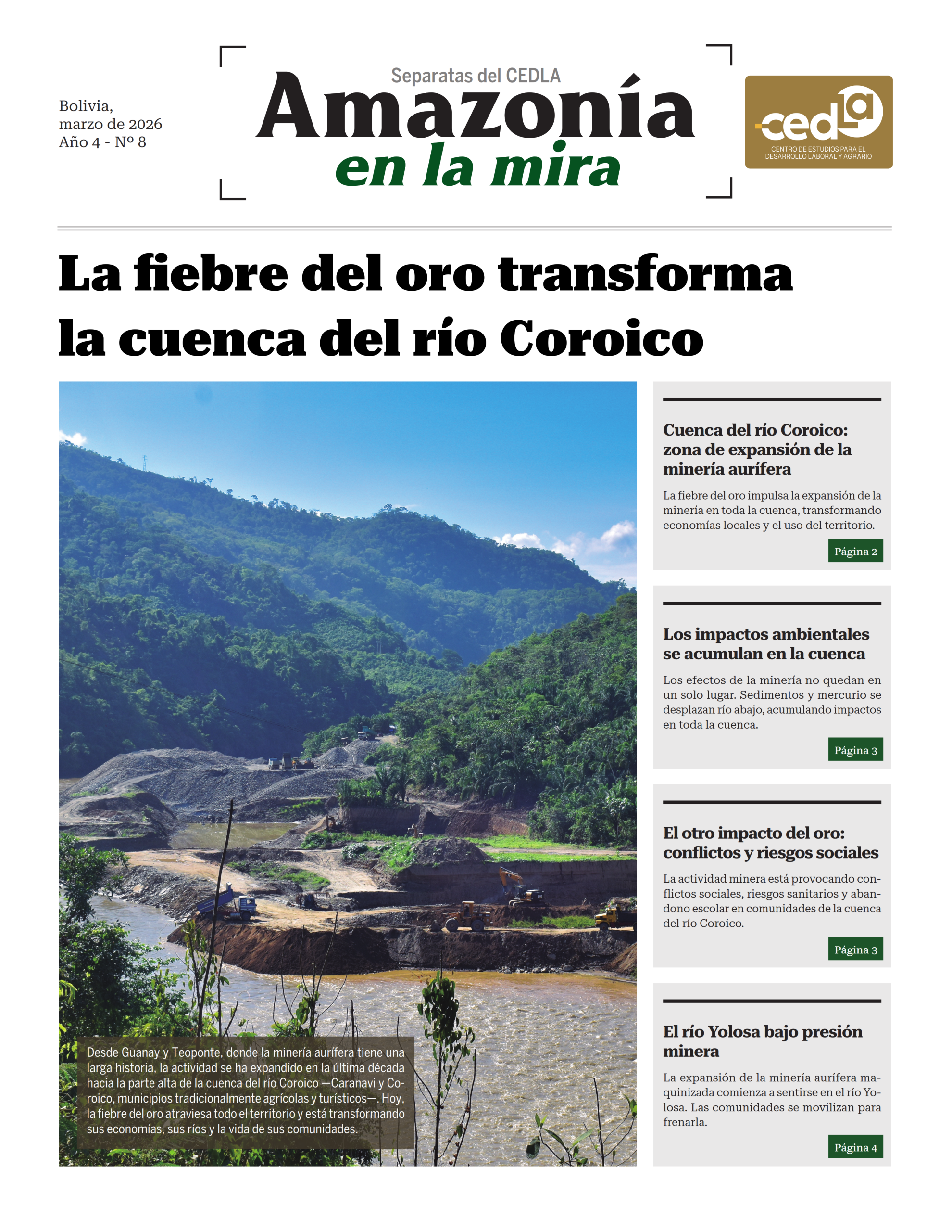 Así, ambas partes de la cuenca están conectadas no solo por el agua que recorre sus ríos, sino también por un mismo ciclo extractivo: el del oro, que se caracteriza por el incremento de las cooperativas mineras, una mayor maquinización y una lógica territorial expansiva.