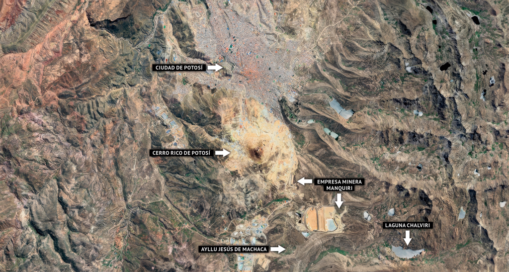 Uno de los puntos más sensibles es la contaminación de las lagunas Chalviri, Lobato, Ulistia y Phisco Kocha que abastecen de agua a la ciudad de Potosí y que se encuentran cerca del dique de colas de la empresa Manquiri.