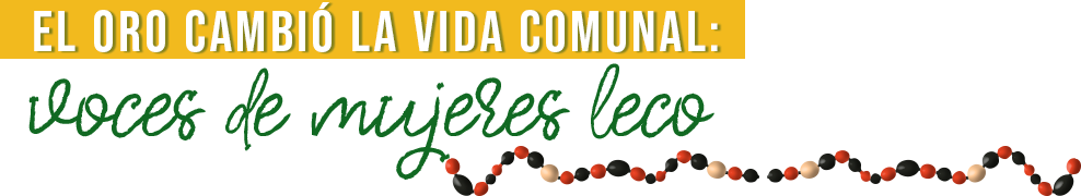 Para muchas familias leco, la minería se convirtió en el principal —y, en la mayoría de los casos, en el único— medio de subsistencia. Aunque las dirigentes leco reconocen los impactos negativos, sobre todo en el medioambiente, también saben que la minería se ha vuelto imprescindible para obtener ingresos.